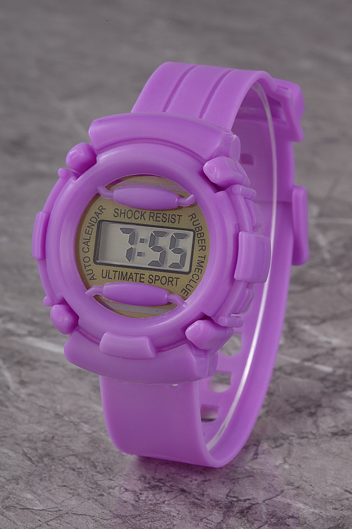 PLCDJT022R06 ÇOCUK MOR DİJİTAL KADRAN SİLİKON KORDON KOL SAATİ