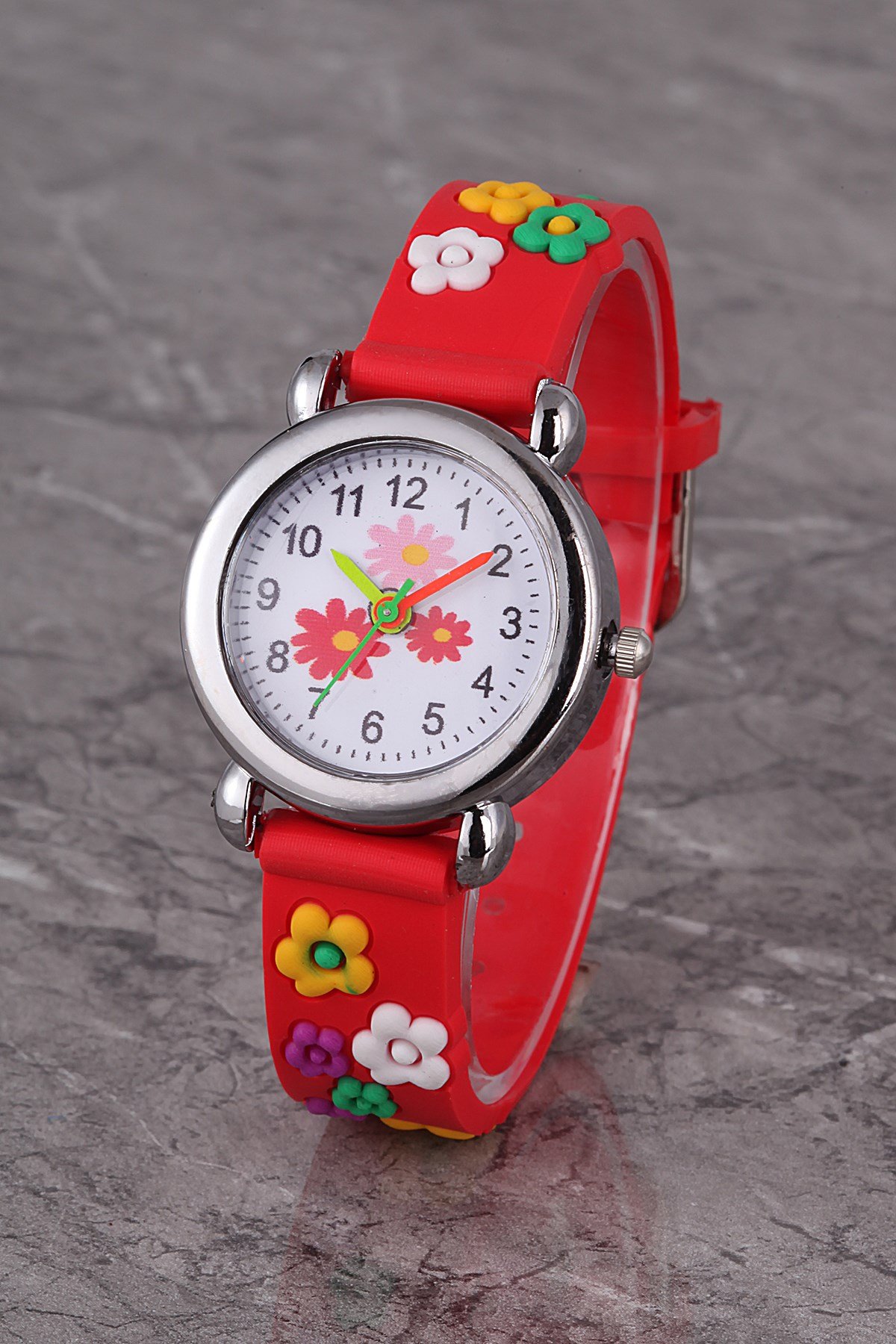 PLCS002R02 Çocuk Saat Kırmızı Çiçek Karekterli Çocuk Saati