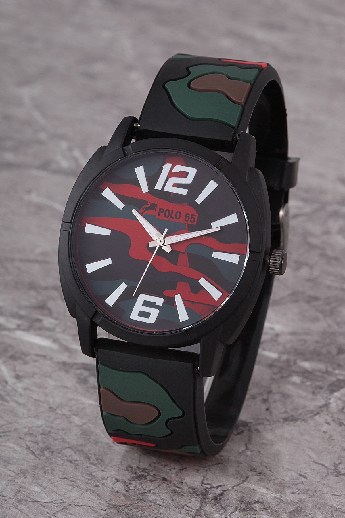 PLES001R01 ERKEK SAAT ÇİZGİLİ  KAMUFLAJ DESENLİ KADRAN SİLİKON KORDON