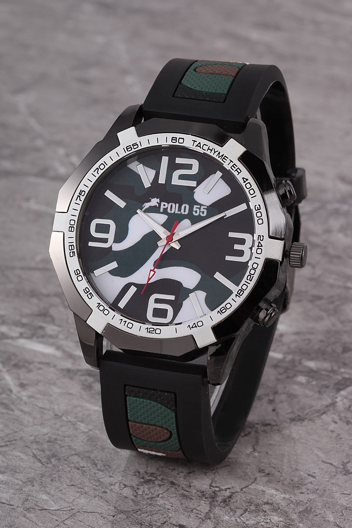 PLES002R03 ERKEK SAAT ÇİZGİLİ  KAMUFLAJ DESENLİ KADRAN SİLİKON KORDON