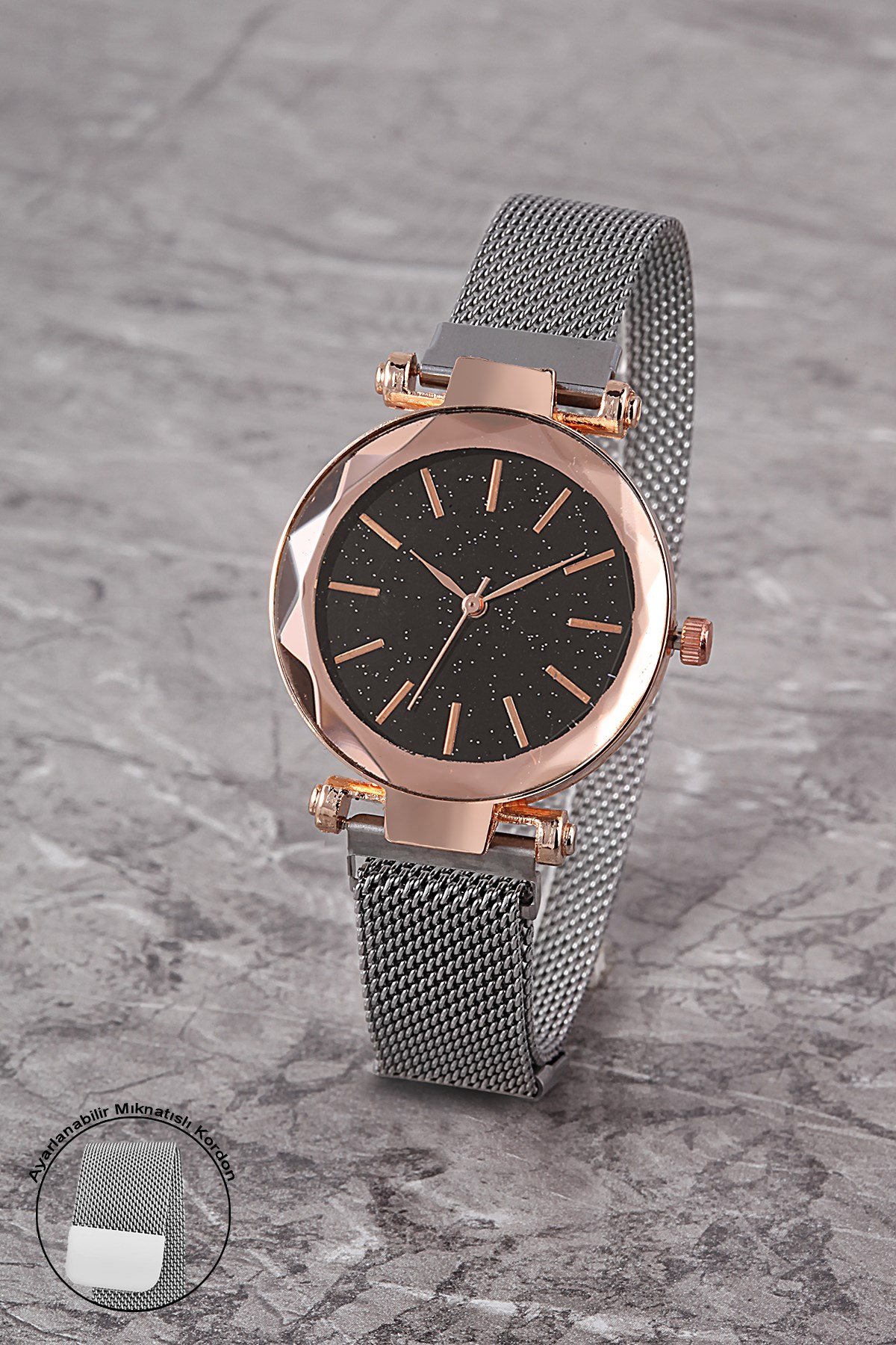 PLKHM005R05 Rakamsız Çizgili Kadran,Hasır Örme Mıknatıslı Kordon, Kadın GÜMÜŞ Kol Saati (PLKHM005R05)
