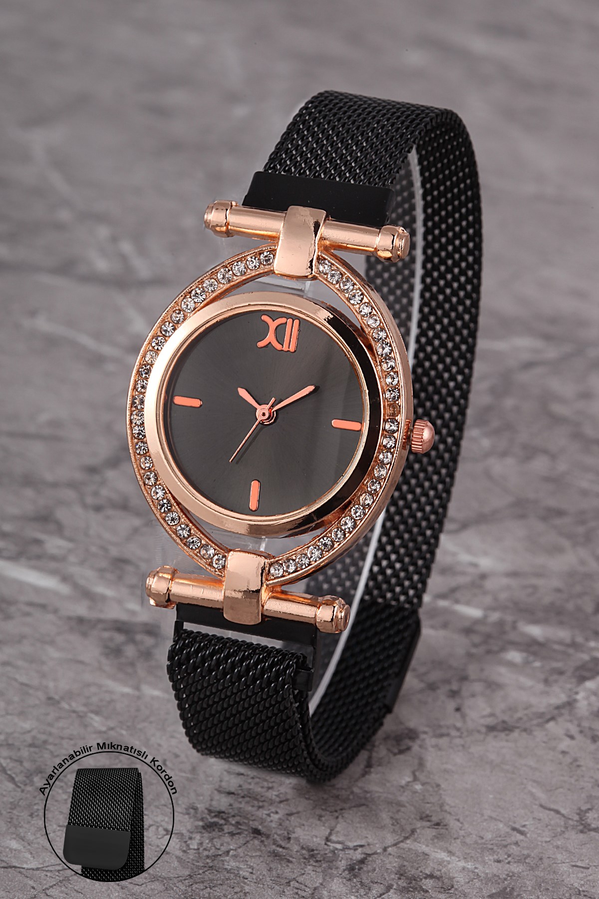 PLKHM011R06 KADIN SAAT TAŞLI DÖNER KADRAN MIKNATISLI HASIR KORDON
