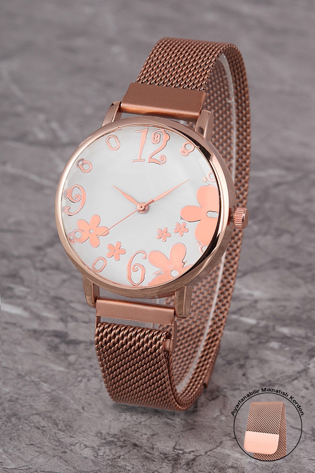 PLKHM013R05 KADIN SAAT NUMARALI ÇİÇEKLİ KADRAN MIKNATISLI HASIR KORDON (PLKHM013R05)