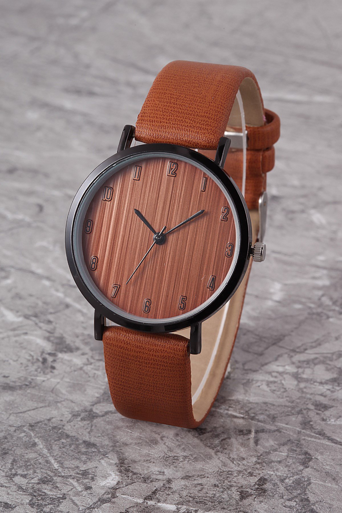 PLKK003R01 Arabik Numaralı,Kendinden Çizgili Kadran, Siyah Sade Kasa,Kadın KAHVERENGİ Kol Saati