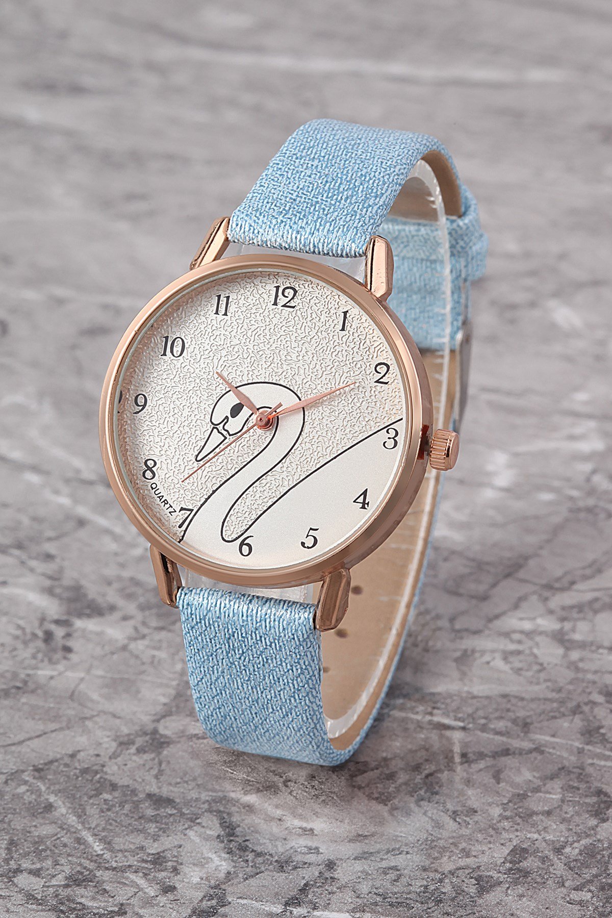 PLKK004R04 Kuğu Desenli Kadran,Rose Şık ve Basit Kasa ,Kendinden Desenli Kayış,Kadın MAVİ Kol Saati (PLKK004R04)